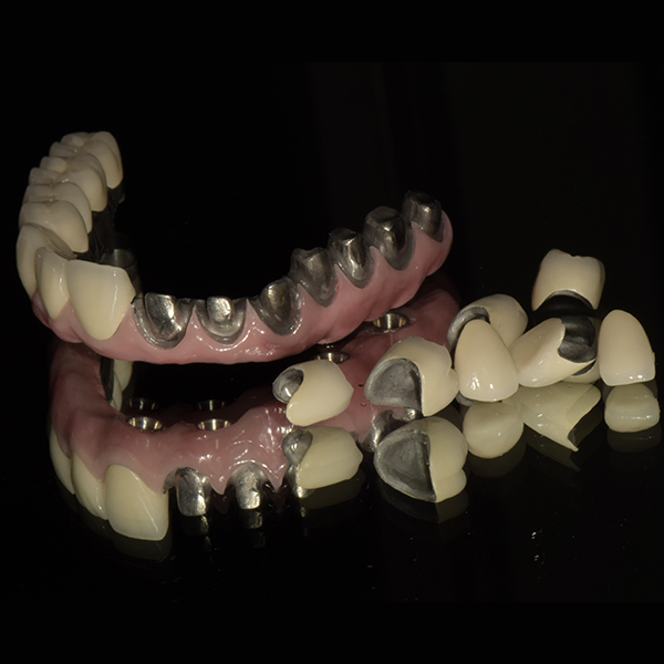 CAD CAM Malo full arch implant bridge: it is the most technologically and aesthetically advanced form of fixed prosthodontic rehabilitation for the fully edentulous patient. This prosthesis is the epitome of biomedical engineering combined with CAD/CAM technology to provide patients with precision implant supported functional replication of the natural dentition. The ideal solution for full arch, implant supported rehabilitation all-on-4.